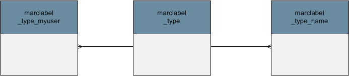 Each row of fixfld_type_myuser identifies a fixed-length data field (fixfld), with the name presented in the language associated with the user's login account. Each library maintains its own fixed-length field names.