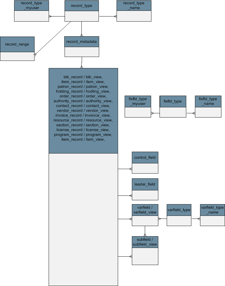 Each row of varfield_view includes metadata and field content for one variable-length field of one record.